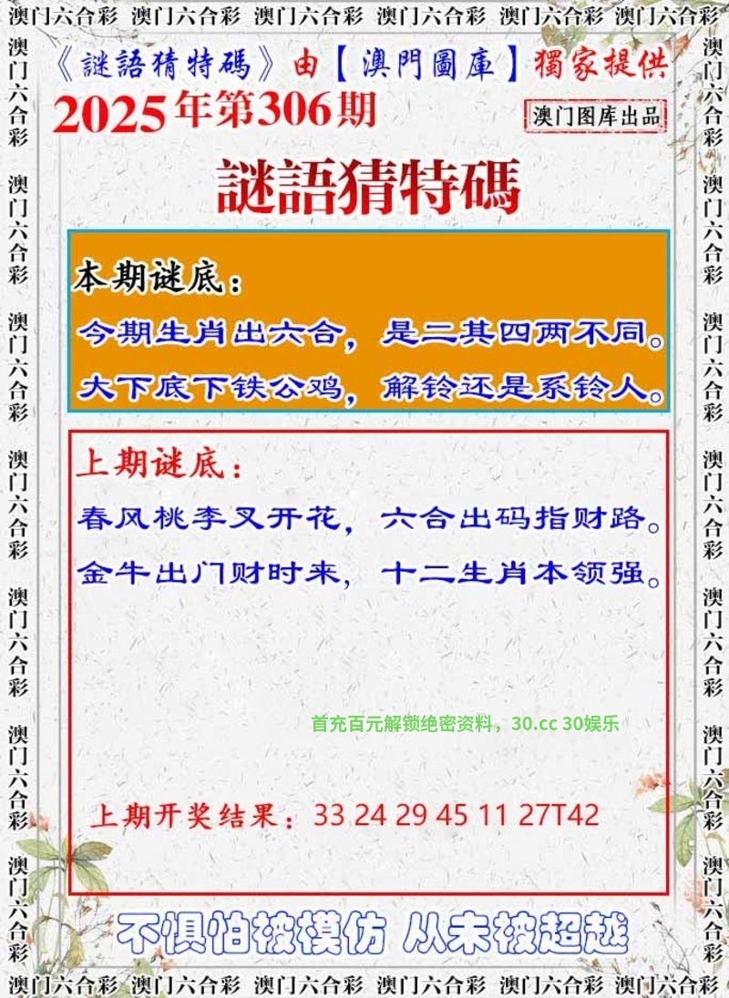 | 306期 | 羊 | 蓝双 | 3 | 8 | 开牛17 |